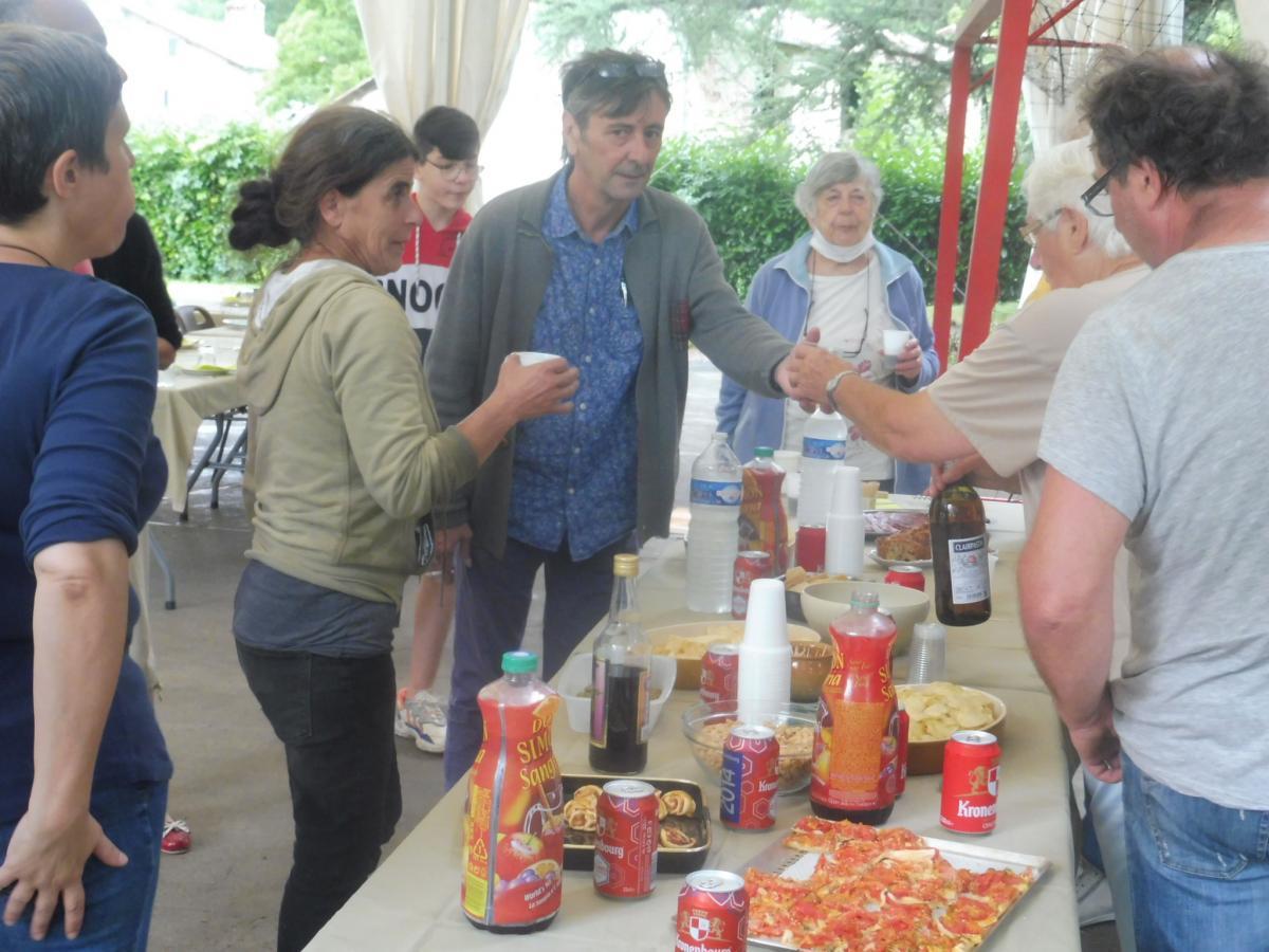 D’autres, solidaires de cette action mais ne pouvant pas venir aider physiquement sur le terrain, ont souhaité participer en préparant plats cuisinés et desserts pour l’entracte de la mi-journée. Cette pause repas bien méritée a permis à chacun de recharger les accus et de reprendre des forces pour poursuivre jusqu’en fin d’après-midi.